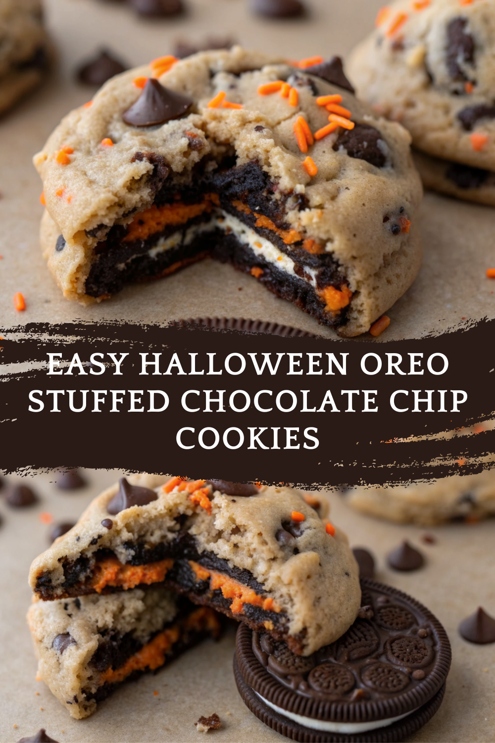 Easy Halloween Oreo Stuffed Chocolate Chip Cookies | Spooky, Gooey & Fun