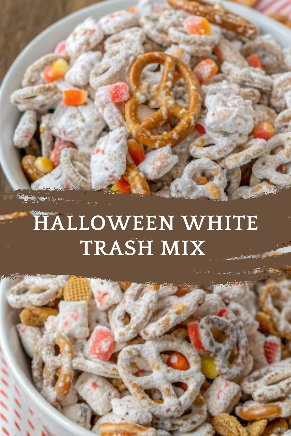 • Christmas White Trash Mix: Swap candy corn for red and green M&Ms, skip the Halloween sprinkles.