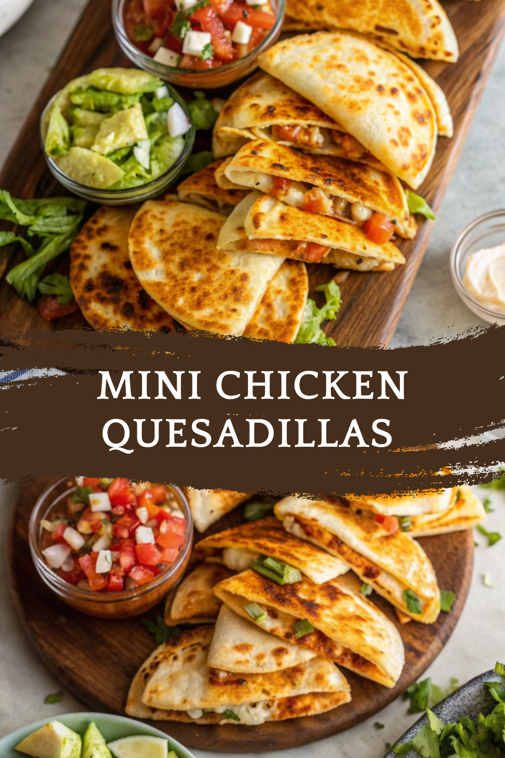 These ingredients create mini chicken quesadillas that are flavorful, cheesy, and perfectly crisp.