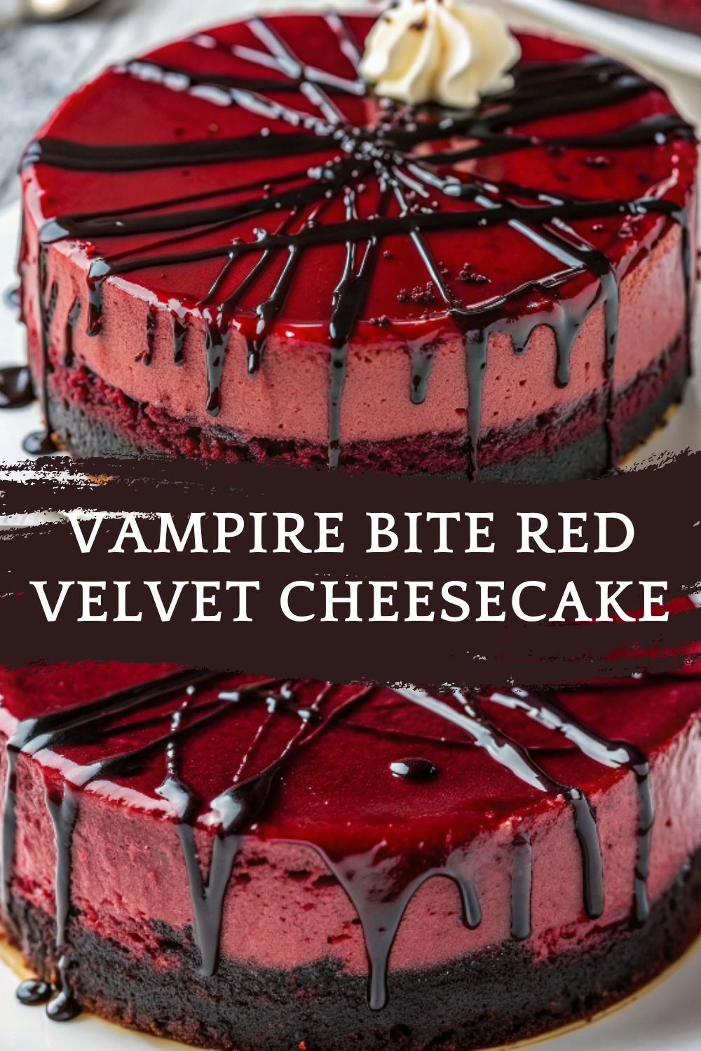 Use a squeeze bottle or spoon to control the placement and let gravity create natural trails. 🏁 Conclusion This Vampire Bite Red Velvet Cheesecake is a Halloween masterpiece — equal parts spooky, elegant, and absolutely delicious. With its deep red velvet filling, smooth texture, and dramatic raspberry coulis topping, it’s guaranteed to impress your guests and satisfy every dessert craving. It’s the kind of dessert that turns heads and sparks conversation — decadent enough for chocolate lovers, yet striking enough to be the centerpiece of your Halloween spread. Each slice tells a story of creamy indulgence and dark romance — a dessert truly to die for.